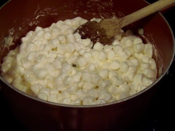 -Add in the mini marshmallow and stir occasionally until the marshmallows are melted.