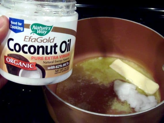 -In a large stockpot over medium heat, melt the butter and the coconut oil.