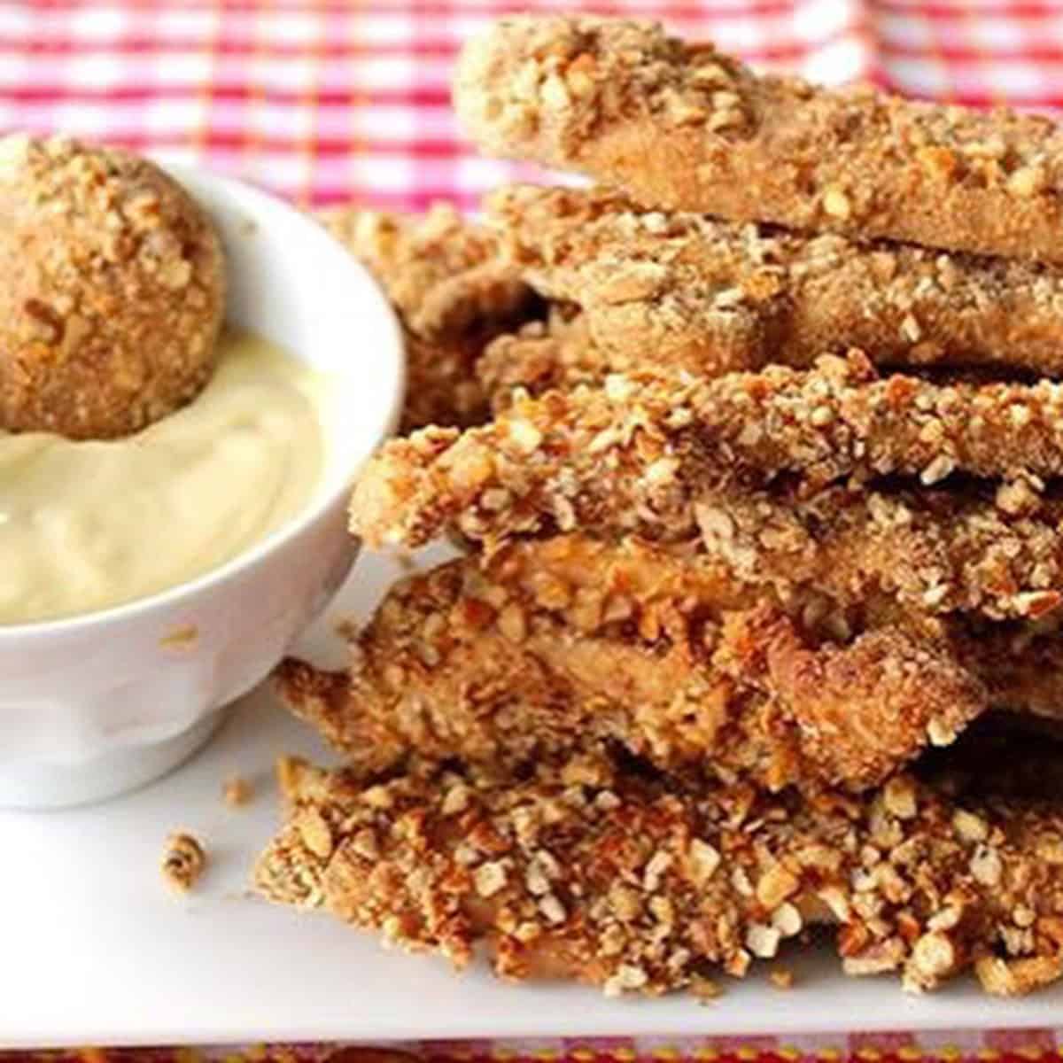 Baked Pretzel Pecan Coated Chicken Tenders can be served as a main course or an appetizer. They're moist and meaty, and their crunchy coating is like a party for your mouth!