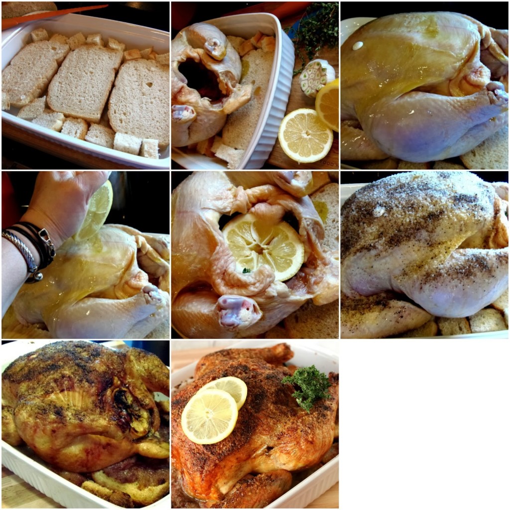 Chicken is something I eat a lot of. Roast chicken dinner is one of my favourites. Found this recipe interesting in that you place your chicken on a bed of bread. I've never done that.I'm very conscientious about cross contamination, especially when handling raw meat! I always wear Nitrile gloves, washing my gloved hands between each individual food prep and dispose of them when my food prepping is all done.