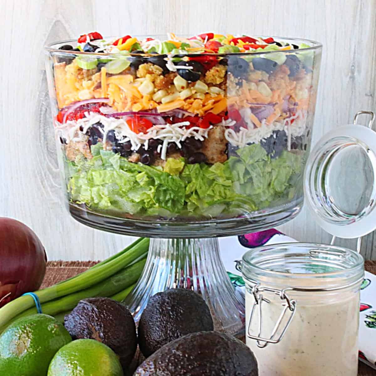 If you're looking for an excellent homemade cornbread to use for the cornbread crumble layer of this salad, check out my recipe for Corn and Onion Buttermilk Cornbread. That's what I used.