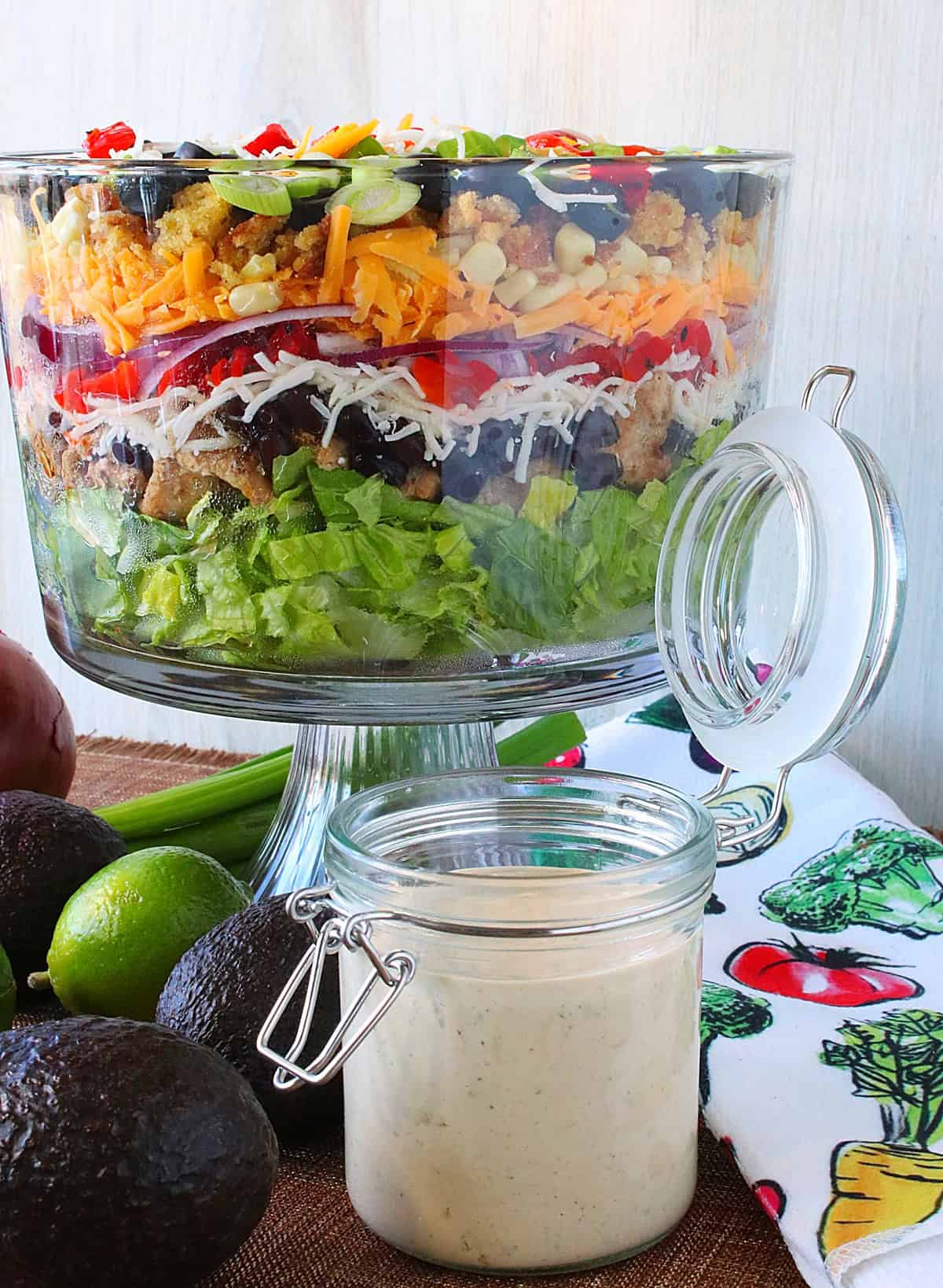 A layer of crumbled Mexican cotija cheese would be delicious and add additional ethnic flair to this Mexican-inspired layered salad.